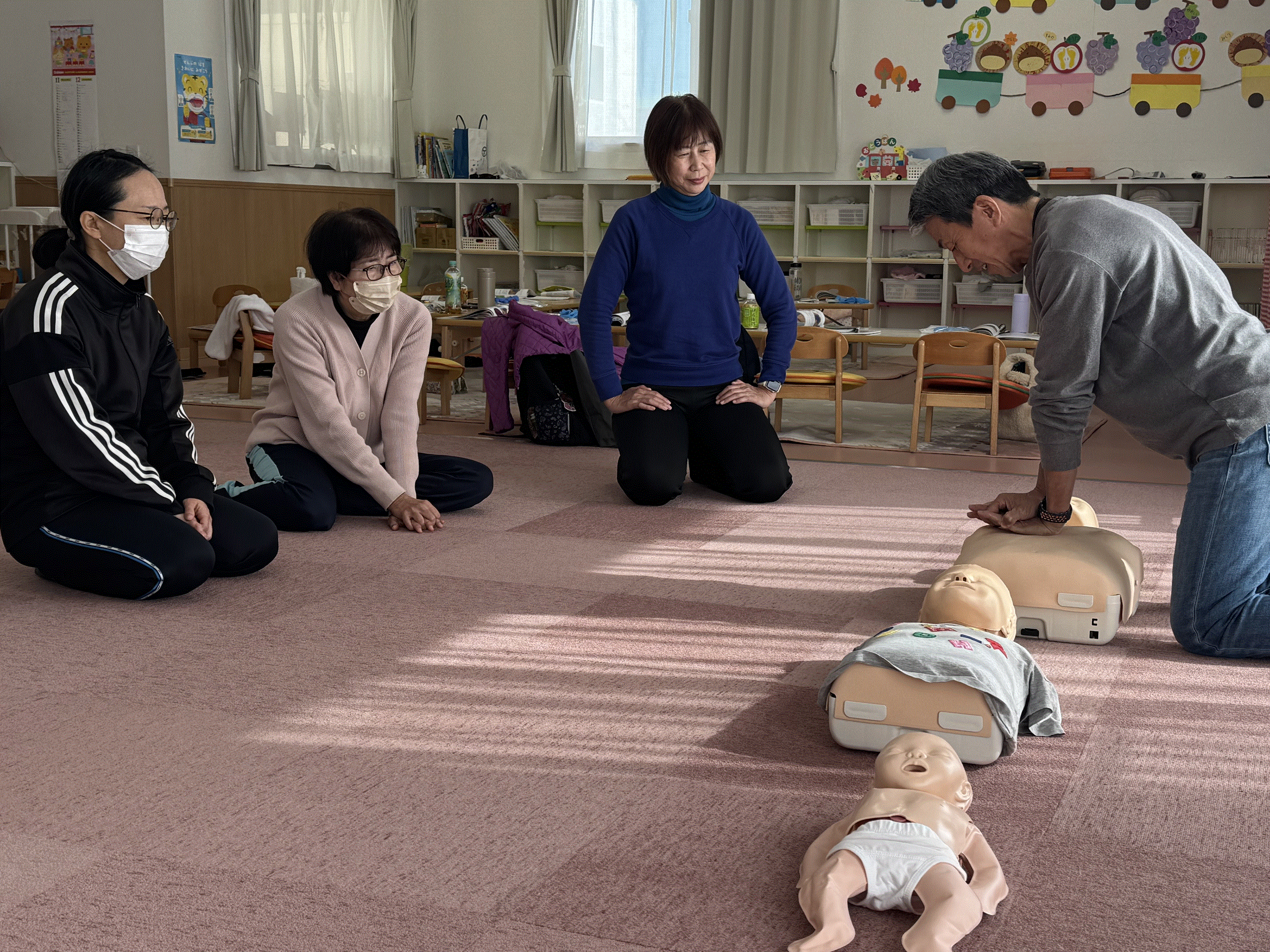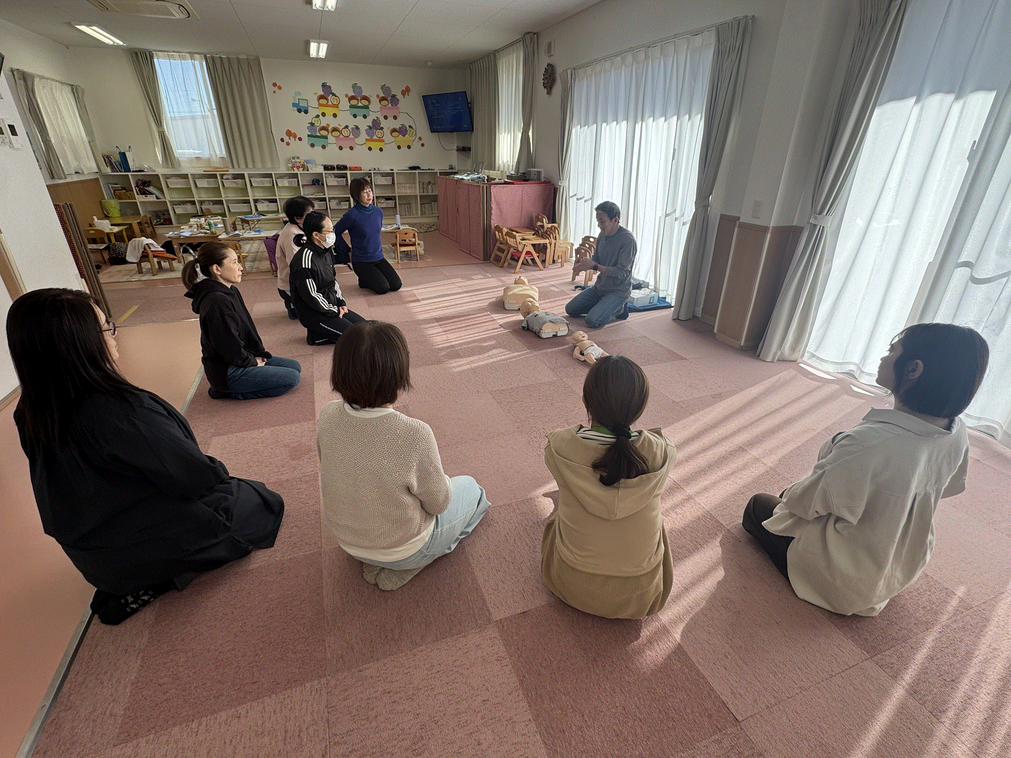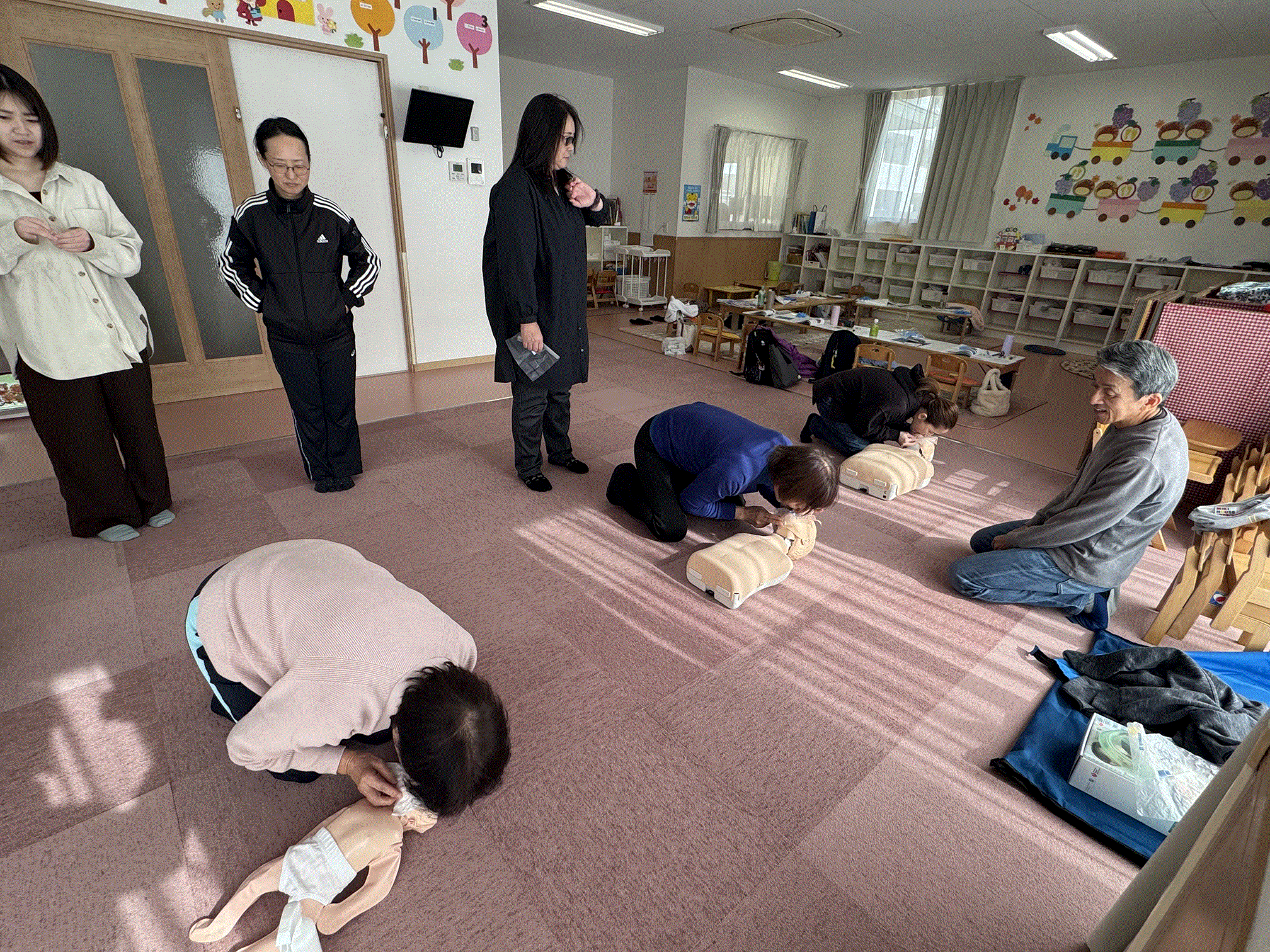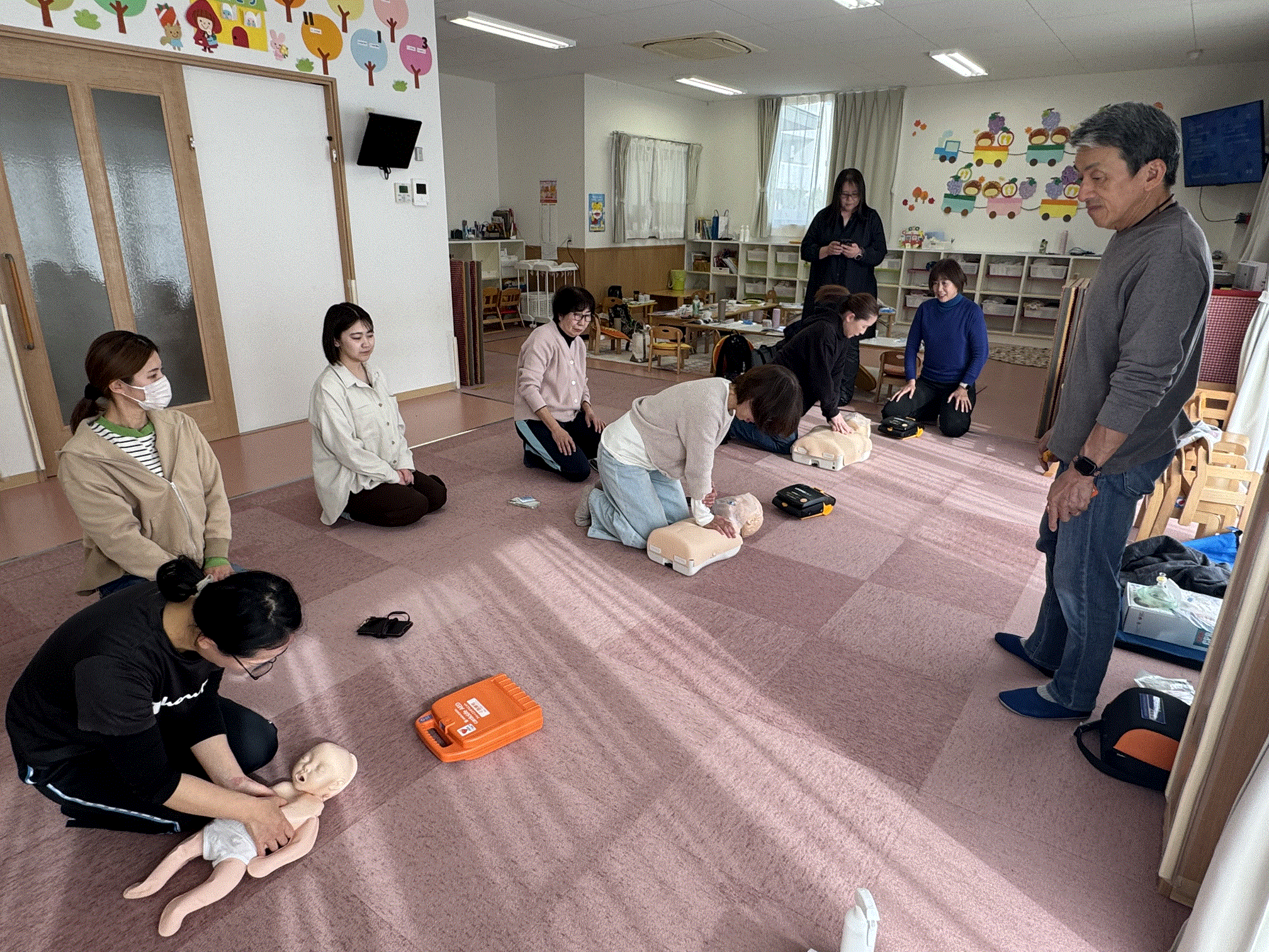 6時間の研修では、井口睦仁インストラクターから緊急時にいち早く子ども達を守るための対応を学びました。訓練用AEDを使った実践や、疑問を率直に出し合う対話、そして現場を想定したシミュレーションを通して、互いの気づきや学びが深まりました。どんな状況でも落ち着いて最善を尽くせるよう、チームさなる(保育士・調理員・ひろばスタッフ)としての意識をさらに高める貴重な時間となりました😊✨