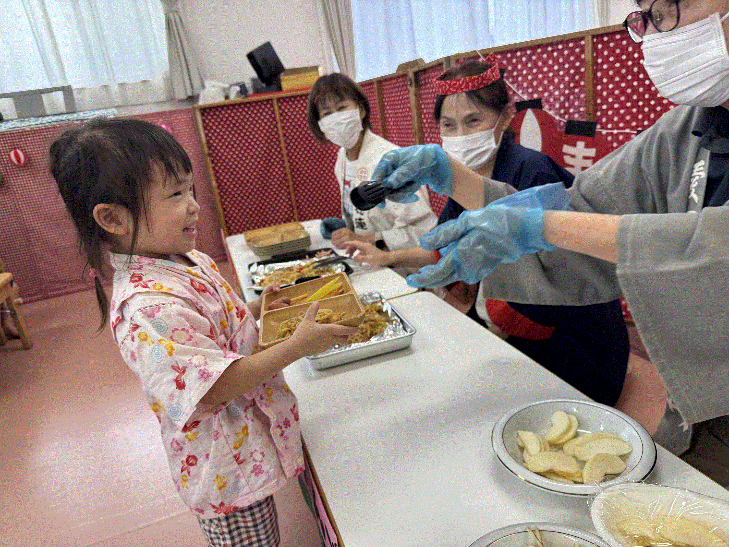 お祭りの雰囲気を楽しみ、みんなでお祭り給食をいただきました😊