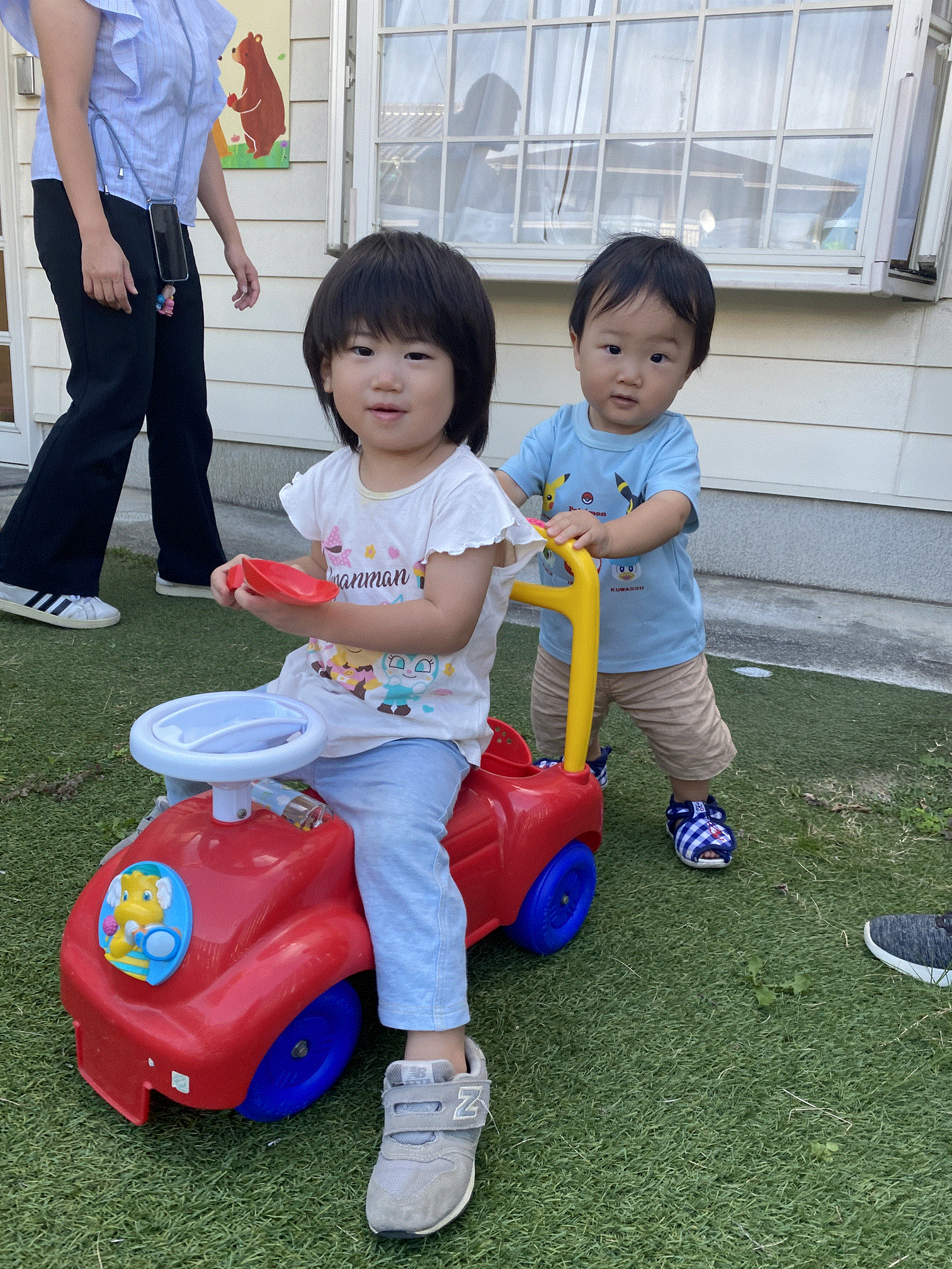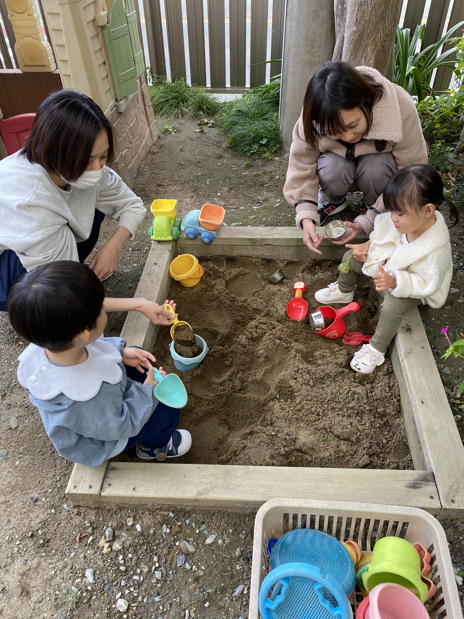 芝生で元気いっぱい遊んだよ😊砂遊びも楽しくできました💕