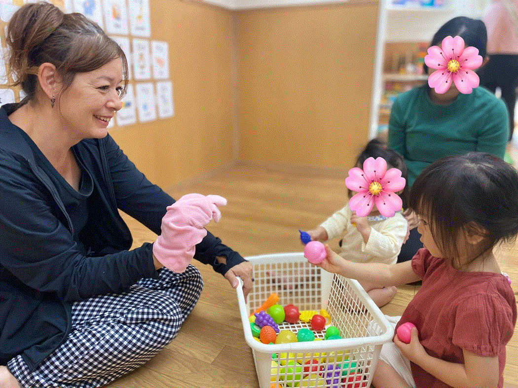 ママと一緒においもほりのふれあい遊びもしましたよ!ひっぱりっこ、楽しかったね🎵