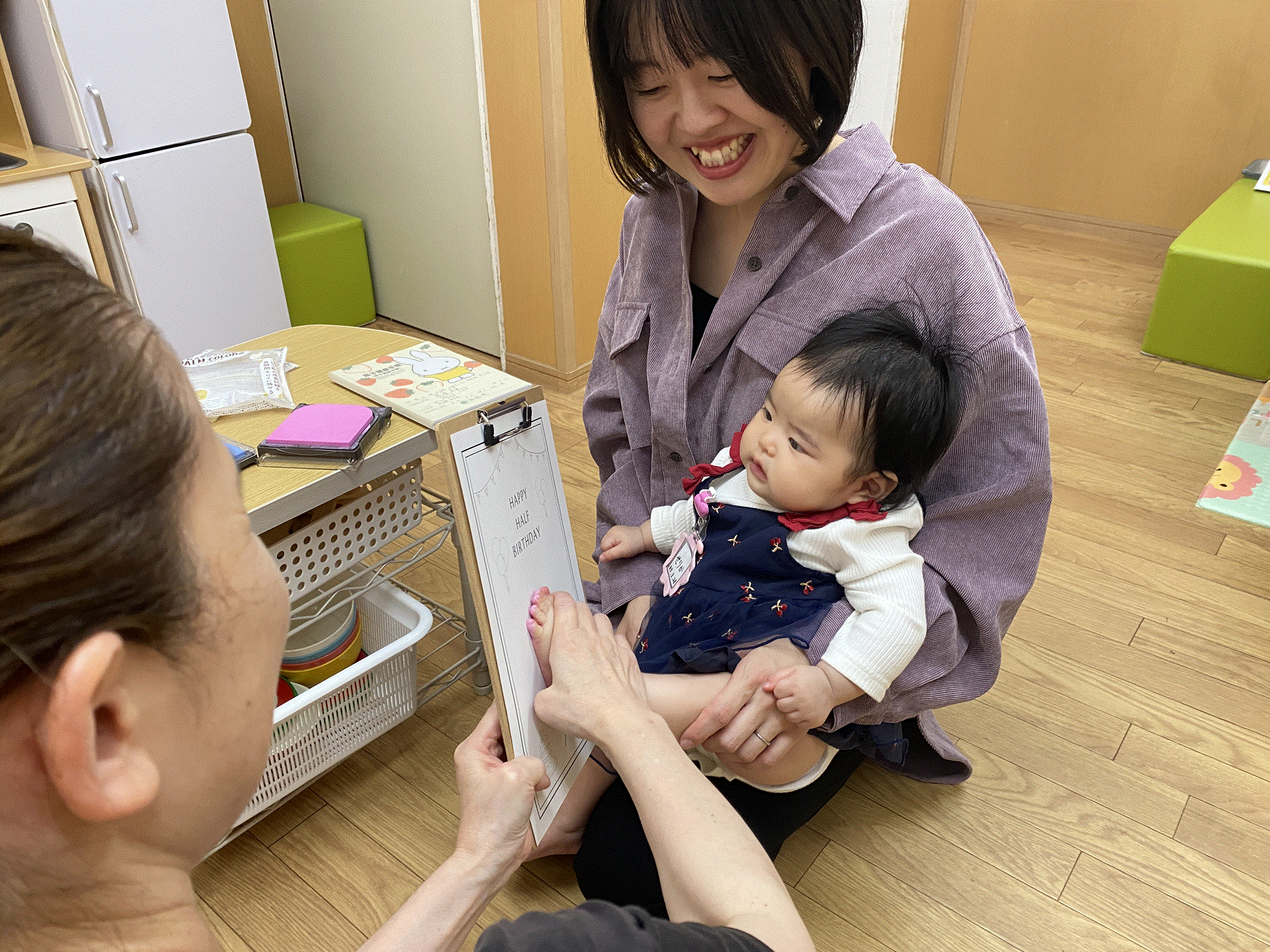 ふれあい遊びをしたり、ハーフバースデーの歌をうたったり、楽しかったね🎵