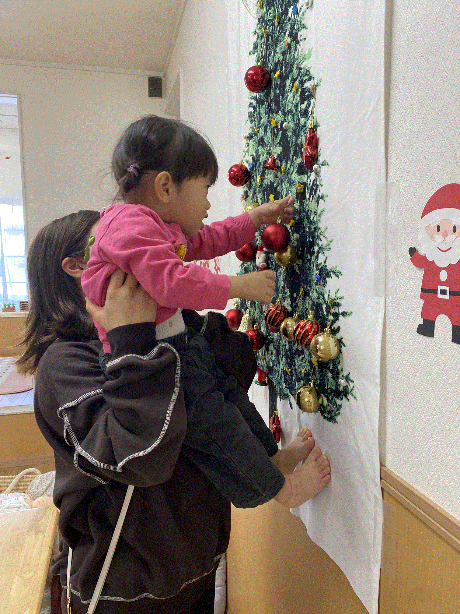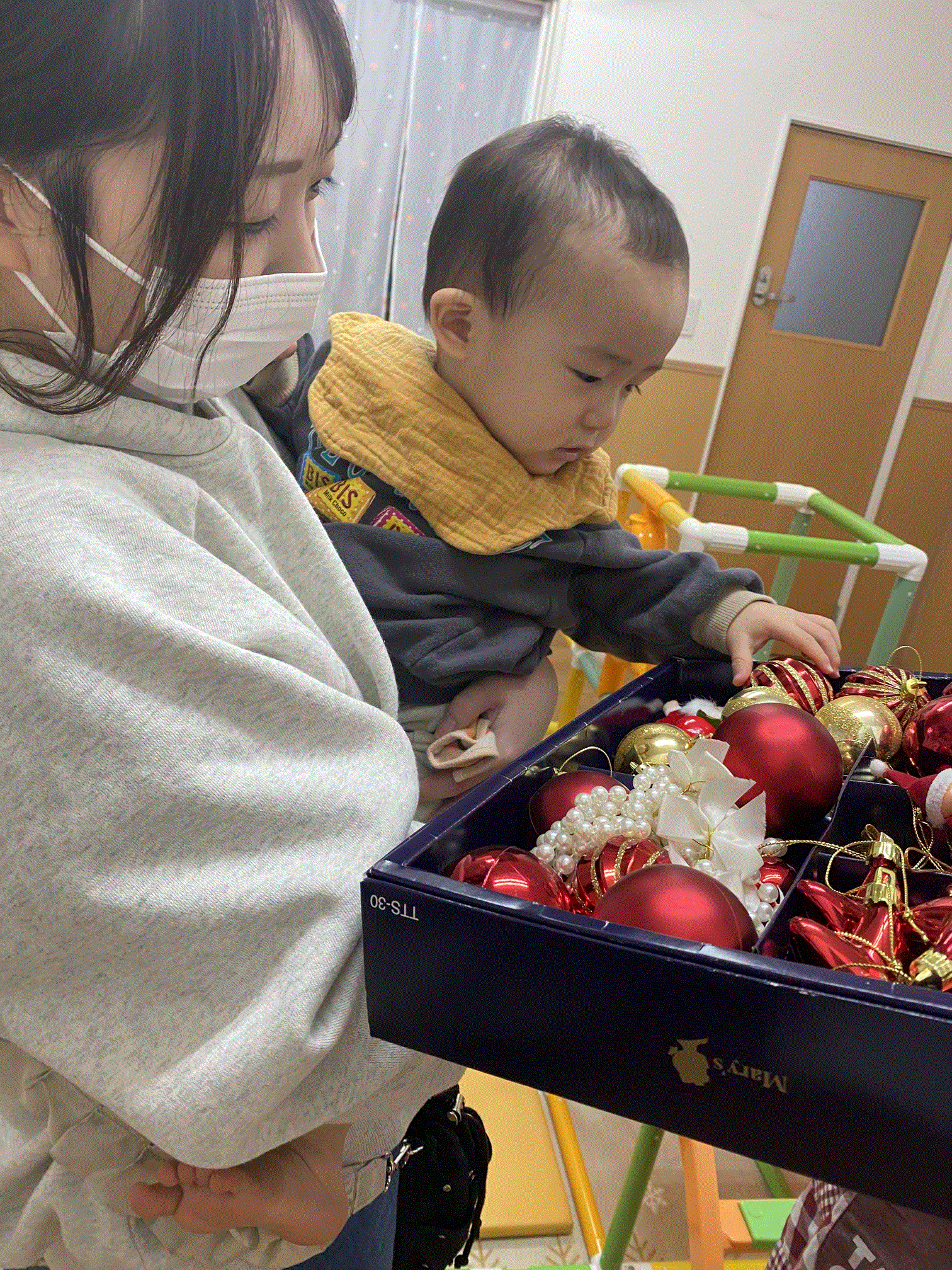 自分で好きな飾りを選んで、パパやママに抱っこしてもらいキラキラの飾りをかざりました!