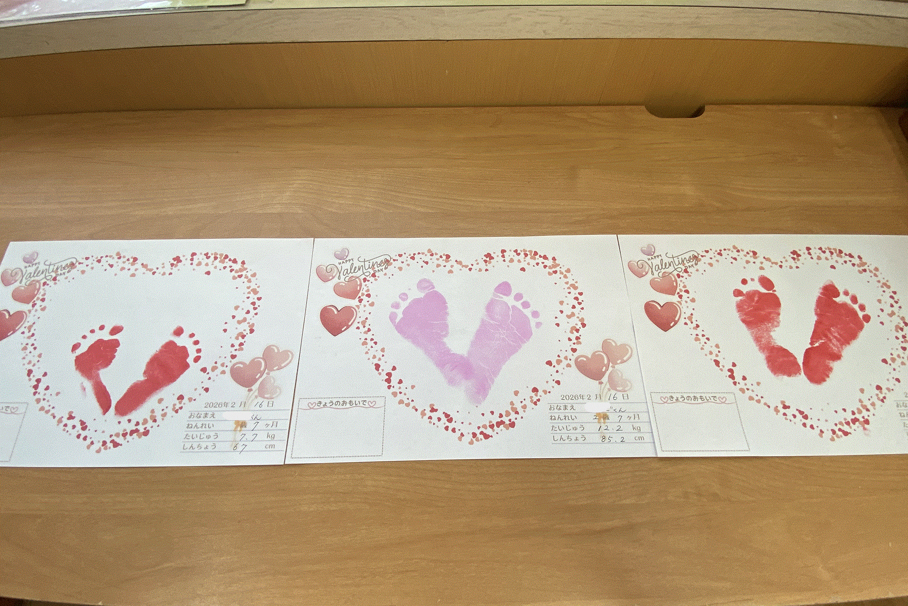 今月の足型は、バレンタインのハートでした♪