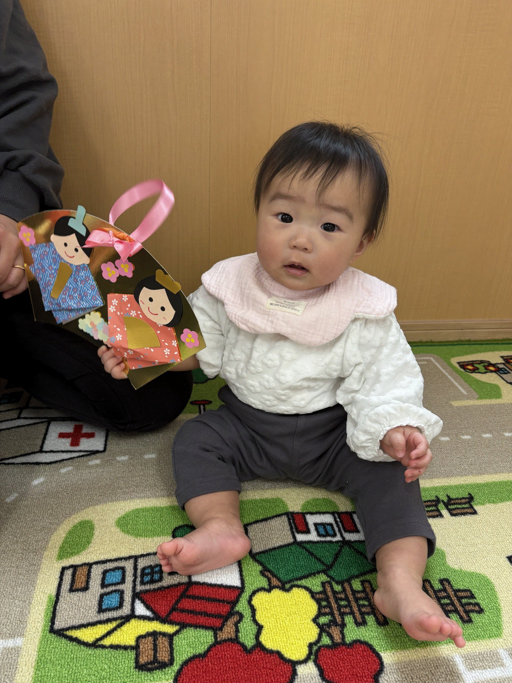ひなまつりのスケッチブックシアターが登場すると、みんな興味津々で見ていました。